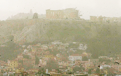 Νέος γύρος αφρικανικής σκόνης, νοτιάδων 6-7 μποφόρ και καταιγίδων στα βορειοδυτικά αναμένεται σήμερα, ενώ χιόνια θα πέσουν στα ορεινά-ημιορεινά της Ηπείρου και της δυτικής Μακεδονίας. Σύμφωνα με την ΕΜΥ, η μεταφορά της σκόνης ευνοείται σήμερα και αύριο, οπότε οι νοτιάδες θα ενισχυθούν στα 8 και πιθανώς 9 μποφόρ. Η θερμοκρασία θα πάρει την ανιούσα αγγίζοντας ξανά τους 18 βαθμούς Κελσίου.