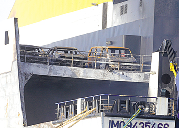 Εντοπίστηκε απανθρακωμένο πτώμα σε ένα από τα φορτηγά που βρίσκονταν μέσα στο γκαράζ 4 του μοιραίου πλοίου
