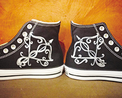 Εργα τέχνης πάνω σε… παπούτσια από μια ταλαντούχα ζωγράφο. Η Ματίνα Λαμπροπούλου, με καταγωγή από την Τήνο, έχει γίνει η νέα αγαπημένη των επωνύμων, αφού «μεταμορφώνει» τα απλά και μονόχρωμα πάνινα αθλητικά τους σε πραγματικούς πίνακες ζωγραφικής. Celebrities από τον χώρο του τραγουδιού, της τηλεόρασης και του θεάτρου την αναζητούν, ώστε να δημιουργήσει ένα μοναδικό έργο τέχνης στα πατούμενά τους, σε σχέδια που συνήθως επιλέγουν οι ίδιοι κι έχουν ιδιαίτερη σημασία γι’ αυτούς.