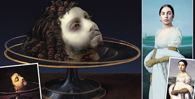 Στο πρώτο έκθεμα η Lady Gaga μεταμορφώνεται σε «Δεσποινίδα Ριβιέρ» και εντυπωσιάζει. Το ίδιο ισχύει και το τρίτο, που αφορά το έργο του Jacques Louis David. Παρ’ όλα αυτά το βίντεο-πορτρέτο της διάσημης τραγουδίστριας που… τερματίζει πρώτο και με διαφορά σε ό,τι αφορά τις εντυπώσεις δεν είναι άλλο από εκείνο της «Κεφαλής του Ιωάννη του Βαπτιστή σε πιάτο». Σε αυτό ο Αμερικανός εικαστικός συγχωνεύει μεταξύ τους το μοντέλο του 16ου αιώνα του Andrea Solario και το μετασχηματισμένο πρόσωπο της Gaga.