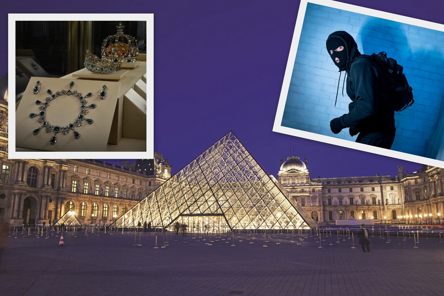 Ολα άρχισαν περίπου στις 9.30 το πρωί της Κυριακής, όταν τρεις ή τέσσερις διαρρήκτες κατέφθασαν με σκούτερ κάτω από το παράθυρο «Γκαλερί του Απόλλωνα», στην πλευρά του Μουσείου του Λούβρου δίπλα στον ποταμό του Παρισιού, Σηκουάνα. Για να ανέβουν στο παράθυρο χρησιμοποίησαν κινητό γερανό και στη συνέχεια έσπασαν τα παράθυρα της αίθουσας με τη βοήθεια τροχού.