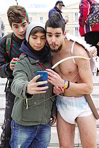 Βρήκαμε τον… Ερωτα στο κέντρο της Αθήνας, συγκεκριμένα στην πλατεία Συντάγματος, ακριβώς έξω από τη Βουλή! Τον λένε Κώστα Τσάκαλο και είναι μόλις 22 ετών. Ο ίδιος έσκασε μύτη στο πολυσύχναστο σημείο σημαδεύοντας τους περαστικούς με τα βέλη του και μοιράζοντάς τους προφυλακτικά. «Διότι είναι ωραίος ο έρωτας, αλλά πρέπει να τον απολαμβάνουμε με ασφάλεια» δήλωσε ο ίδιος στην «Espresso».
