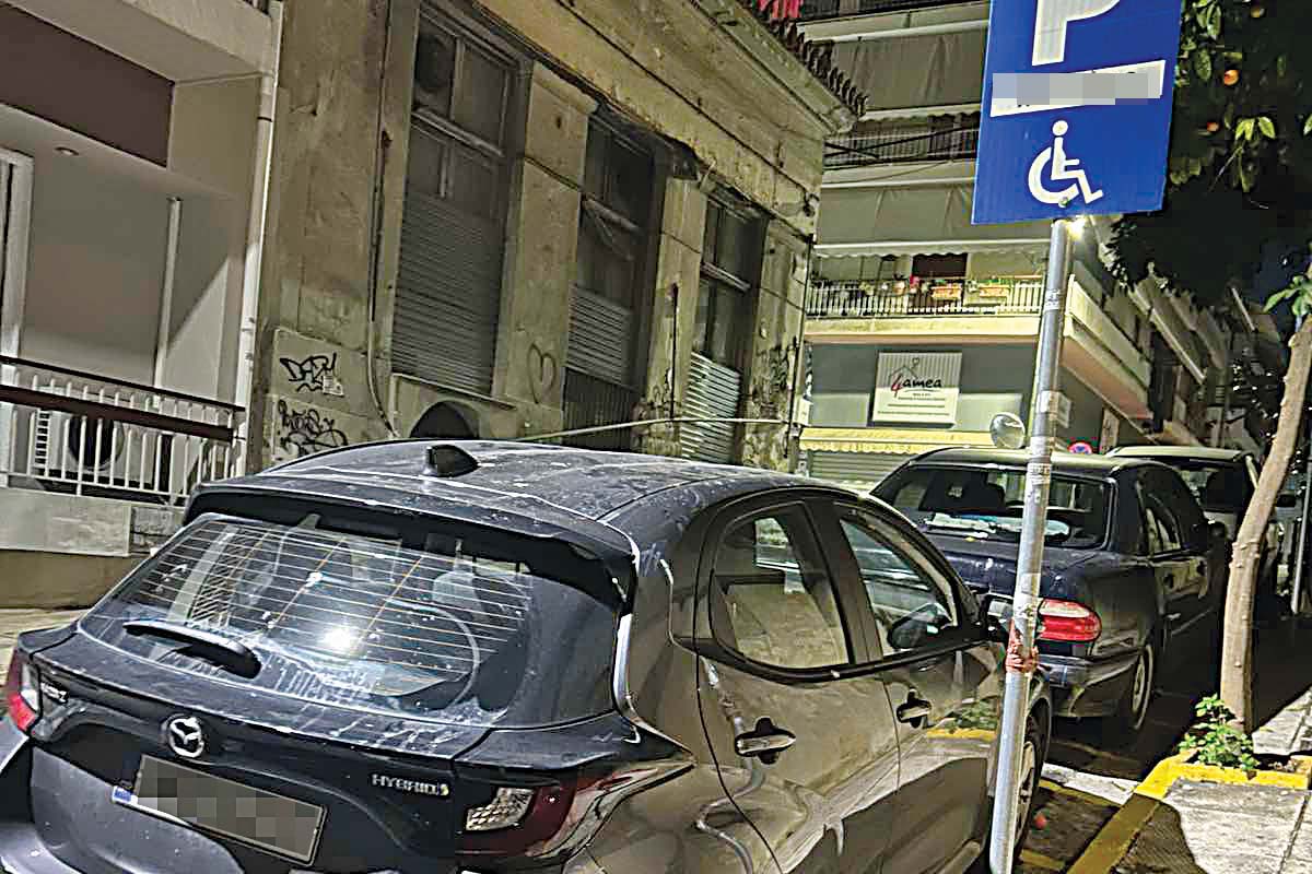 Με δύο μεγάλες, ευδιάκριτες ταμπέλες (2,20 μ.) με το σήμα των ΑμεΑ, με κίτρινη διαγράμμιση στο οδόστρωμα και το πεζοδρόμιο, ο «αρτιμελής» παρκάρει σκόπιμα και ανενόχλητος. Το μαρτύριο αρχίζει όταν επιστρέφεις σπίτι από μια θεραπεία, από μια απλή βόλτα για λίγο αέρα. Είσαι υποχρεωμένος να περιμένεις! Να περιμένεις το 100, να περιμένεις το περιπολικό να έρθει, να βεβαιώσει κλήση και να αφαιρέσει πινακίδες για τον παράνομα παρκαρισμένο που «απλώς δεν είδε».