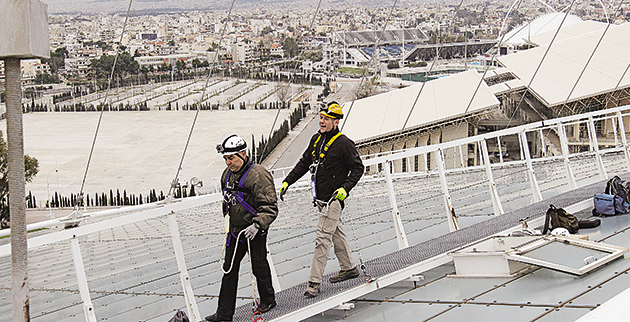 Ετσι αφού εργάστηκε ως οδοκαθαριστής, εναερίτης της ΔΕΗ, αλλά και συντηρητής της γέφυρας Ρίου – Αντιρρίου, ο Σπύρος δέχτηκε την πρόκληση να ανεβεί στο στέγαστρο Καλατράβα του Ολυμπιακού Σταδίου της Αθήνας και να αλλάξει κάποιες από τις λάμπες αλλά και τις βίδες που συγκρατούν την κατασκευή. Φορώντας τον κατάλληλο εξοπλισμό και έχοντας στο πλευρό του ανθρώπους που γνωρίζουν τη δουλειά (με τους οποίους γνωρίστηκαν λίγο πριν από το γύρισμα), ο παρουσιαστής του ΑΝΤ1 ανέβηκε μέσα από τις σωλήνες, που φέρουν σκάλα στο εσωτερικό τους στο σκέπαστρο, βγήκε από την καταπακτή στο σημείο όπου έπρεπε να επισκευάσει τις βλάβες και έφερε εις πέρας την αποστολή του.