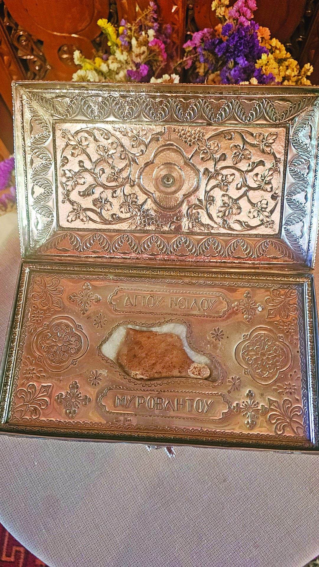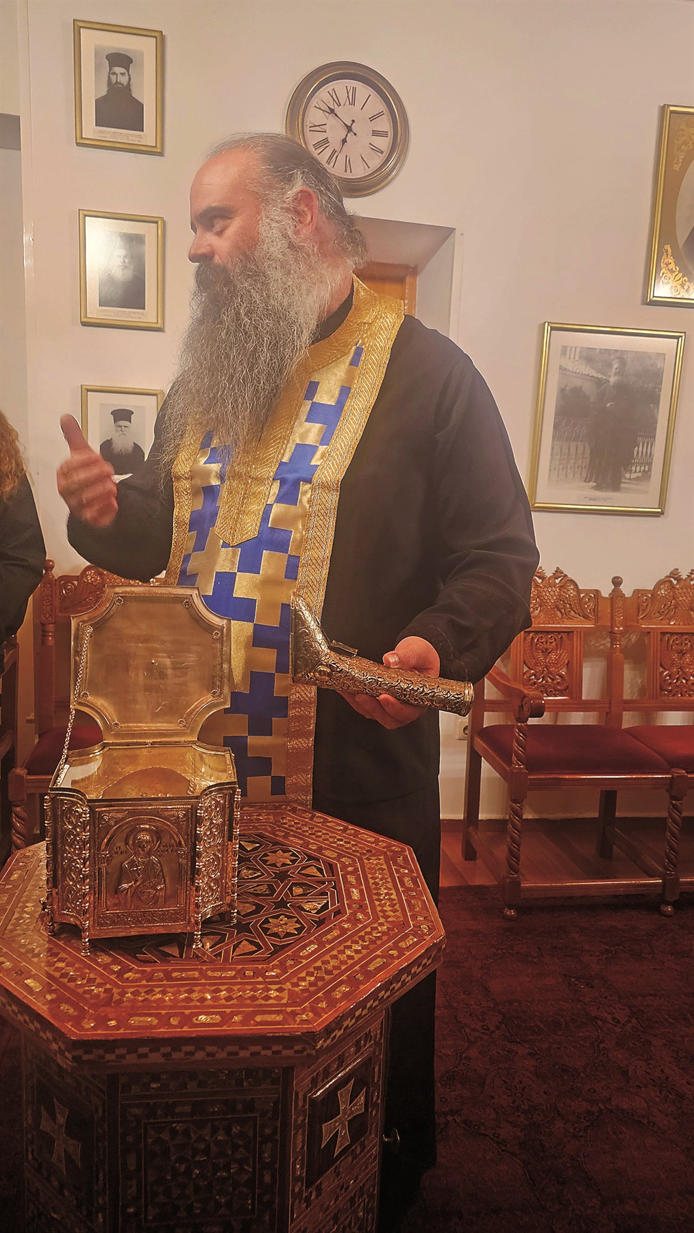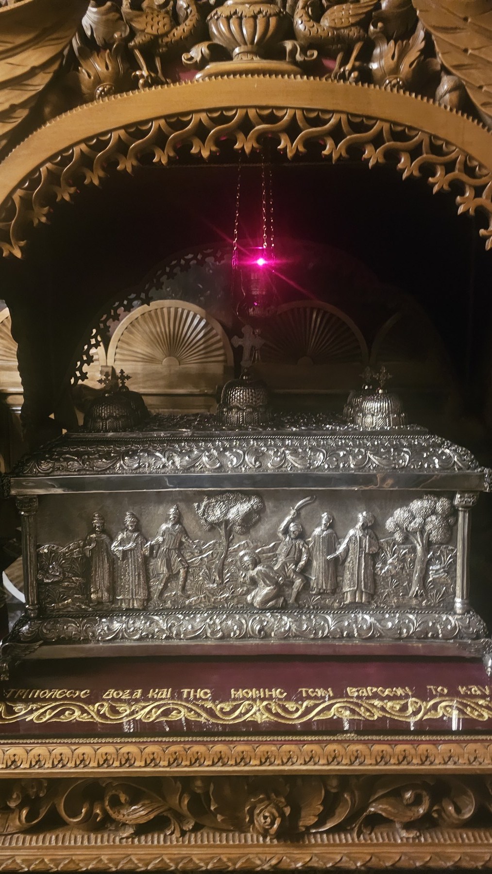 Η ιστορία της μονής, πλούσια. Ανάβουμε το κερί μας και ο πατέρας Σαμουήλ μας κάνει ένα μεγάλο δώρο. Μας φέρνει τα ιερά λείψανα της αγίας Παρασκευής, τμήμα από το κρανίο της, αλλά και τμήμα από το πόδι του αγίου Κηρύκου, και μονομιάς νιώσαμε την ευωδία τους. Στη συνέχεια μας καλεί να προσκυνήσουμε τα λείψανα των νεομαρτύρων Παύλου και Δημητρίου που στεφανώθηκαν από τον Κύριο, καθώς δεν άλλαξαν την πίστη τους κατά τον οθωμανικό ζυγό και φώτισαν το έθνος.
