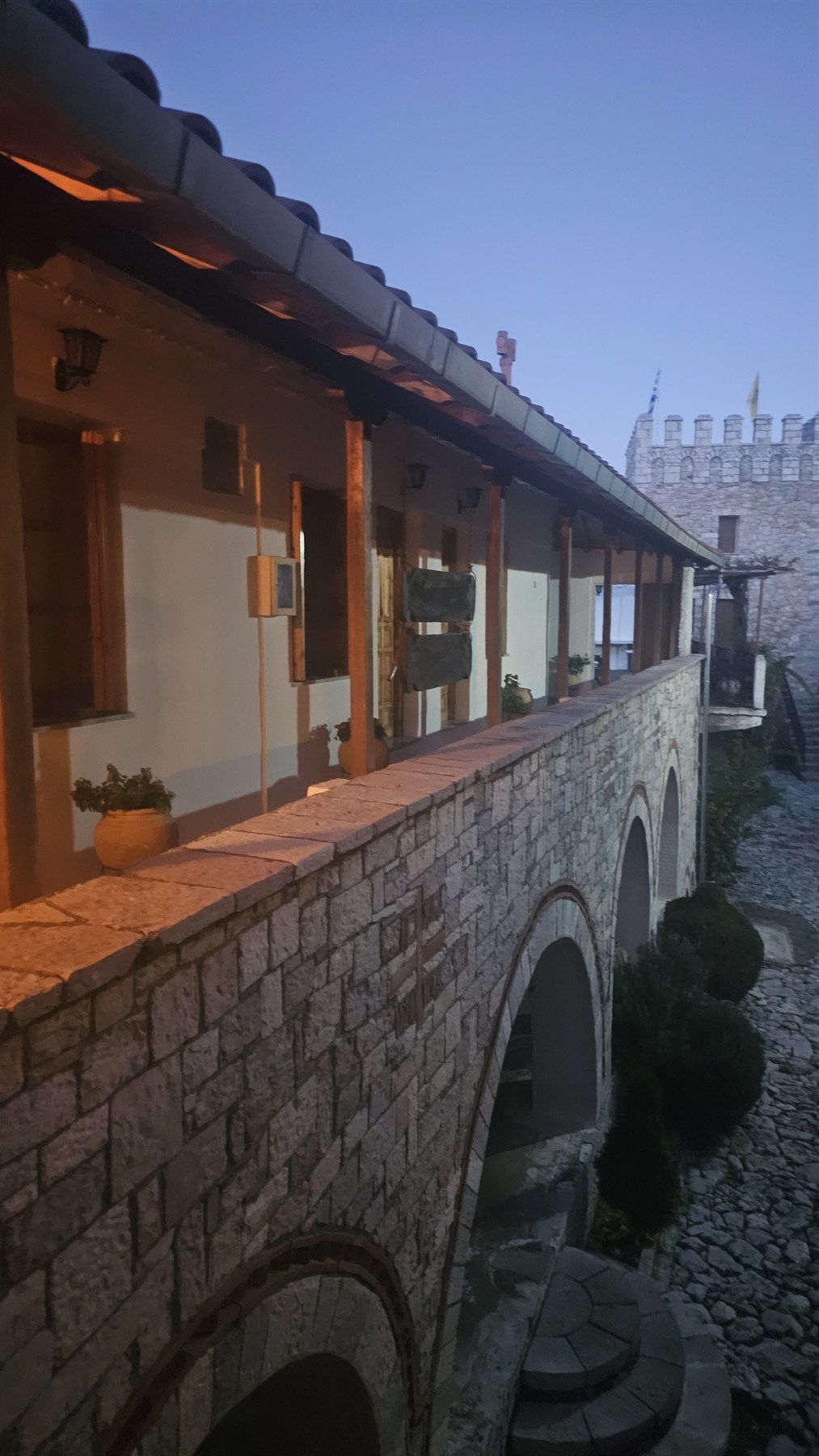 Ο ηγούμενος Λεόντιος μάς καλωσορίζει στη μονή και μας προσφέρει στο αρχονταρίκι λουκούμι και καφέ, ενώ το πάτωμα τρίζει κάθε φορά που μπαίνει ένας προσκυνητής. Ενας μοναχός μάς μιλά για την υποχρέωση του ασκητή να παρευρίσκεται στο μεσημεριανό τραπέζι αλλά και στις λειτουργίες και τις διακονίες στο περιβόλι και μας χαρίζει κομποσκοίνια.