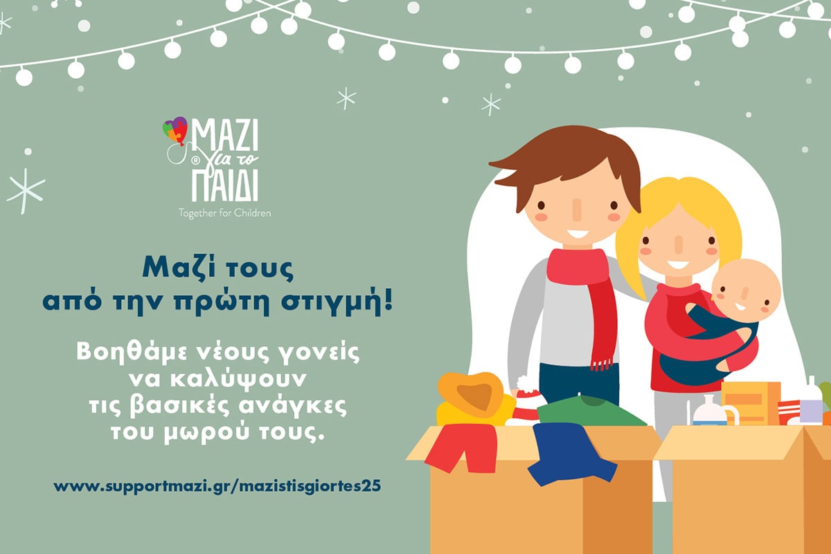 Το Μαζί για το Παιδί, φέτος στις γιορτές, σας προσκαλεί να συμμετέχετε στην προσπάθεια του να αγκαλιάσει ευάλωτες οικογένειες με βρέφη 0-12 μηνών.