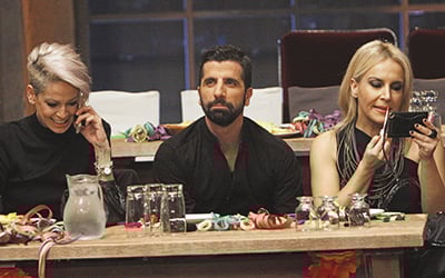 Οι κομμώτριες και οι μακιγιέζ έπρεπε να περιποιηθούν σε χρόνο dt τους 26 καλεσμένους. Κατερίνα Κούκα, Λάουρα Νάργες, Τζένη Μπότση, Σωτήρης Καλυβάτσης,
