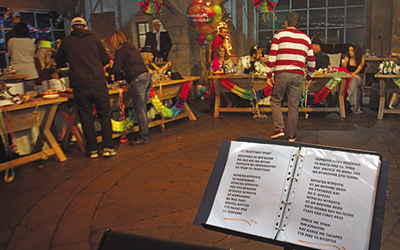 Το στούντιο ήταν στολισμένο αποκριάτικα. O κόσμος, που δημιουργούσε ένα χαρούμενο κομφούζιο, πηγαινοερχόταν ανάμεσα σε σερπαντίνες και κομφετί, ενώ οι ετοιμασίες ήταν πυρετώδεις.