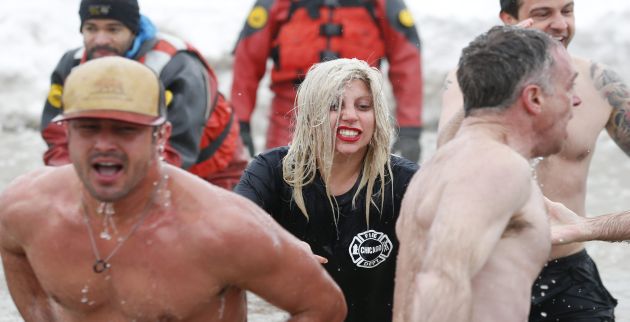 Στα παγωμένα νερά της λίμνης Μίσιγκαν βούτηξαν η «νέα βασίλισσα της ποπ» Lady Gaga και ο αρραβωνιαστικός της