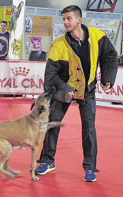 Μια γεύση από τη δουλειά που κάνουν ο ίδιος και οι διάδοχοί του -Ιόλη Γεωργούλη και Μάρκος Πελιτάρης- στο κέντρο εκπαίδευσης είχαν την ευκαιρία να πάρουν όσοι παρακολούθησαν τις εντυπωσιακές επιδείξεις με τα ειδικά εκπαιδευμένα σκυλιά, οι οποίες έγιναν στο πλαίσιο της φετινής έκθεσης «Zootechnica» στη Θεσσαλονίκη.
