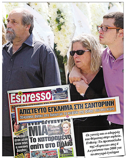 Φρένο στην επικείμενη τηλεοπτική αναβίωση της αποτρόπαιης δολοφονίας της νεαρής δασκάλας Αδαμαντίας Καρκαλή, την οποία αποκεφάλισε ο σύζυγός της περιφέροντας το κεφάλι της στα σοκάκια της Σαντορίνης, στην καρδιά του καλοκαιριού του 2008! Η πιθανότητα και μόνο το φρικτό έγκλημα, που έμοιαζε να ξεπηδά από σενάριο ταινίας τρόμου, να μεταφερθεί στη μικρή οθόνη μέσα από τη σειρά του Αlpha «10η εντολή» προκάλεσε την οργή των συγγενών της άτυχης 25χρονης, οι οποίοι προσέφυγαν στη Δικαιοσύνη απευθύνοντας έκκληση να μην αναγκαστούν να ξαναζήσουν καρέ καρέ τις ανατριχιαστικές σκηνές του θανάτου της.