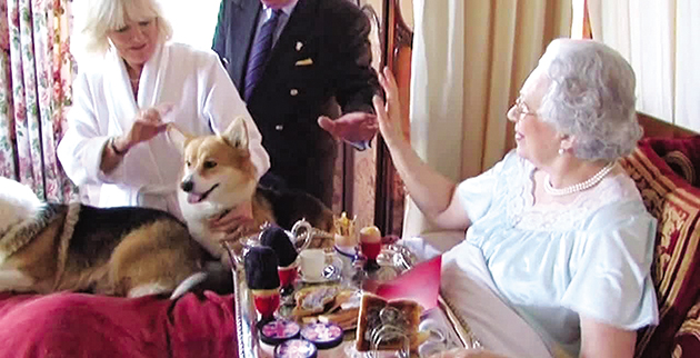 Ο πρίγκιπας Κάρολος και η Καμίλα πλένουν τα βασιλικά σκυλιά την ώρα που η Ελισάβετ απολαμβάνει το πρωινό της στο κρεβάτι. Και είναι τόσο αδέξιοι, προσπαθώντας να ικανοποιήσουν τη βασίλισσα! Της έχουν ετοιμάσει έως και κάρτα με το σλόγκαν «Μείνε ψύχραιμη και συνέχισε να βασιλεύεις». Μόνο που όλα αυτά δεν είναι αλήθεια!
