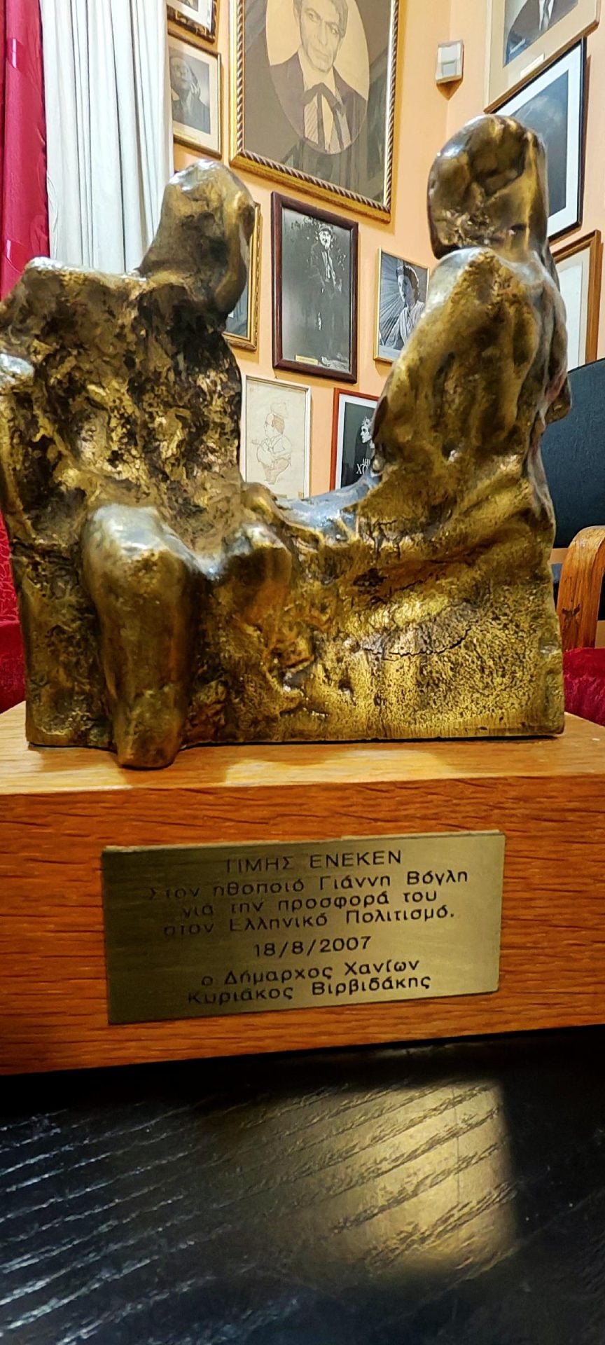 «Τα τρία βραβεία του Γιάννη Βόγλη τα βρήκα πριν από λίγους μήνες τυχαία δίπλα σε έναν κάδο ανακύκλωσης στην Παλλήνη. Προφανώς οι συγγενείς του δεν τα ήθελαν και τα πέταξαν. Ήταν στημένα πάνω σε ένα τραπέζι, μαζί με ακόμα κάποια προσωπικά αντικείμενα. Μου έκανε φοβερή εντύπωση που βρήκα παρατημένα στον δρόμο τόσο σημαντικά κειμήλια ενός σπουδαίου ηθοποιού. Τα βραβεία αυτά, βέβαια, δεν έχουν κάποια σημαντική υλική αξία, μόνο ιστορική. Μόνο το βραβείο από τα Χανιά είναι μπρούντζινο. Αισθάνομαι πολύ τυχερός που τα βρήκα και τα διαθέτω προς πώληση σε χαμηλή τιμή προκειμένου να τους δώσω ξανά ζωή. Άλλωστε, αφού ήταν πεταμένα σε κάδο, σίγουρα δεν θα τα θέλει η οικογένειά του».