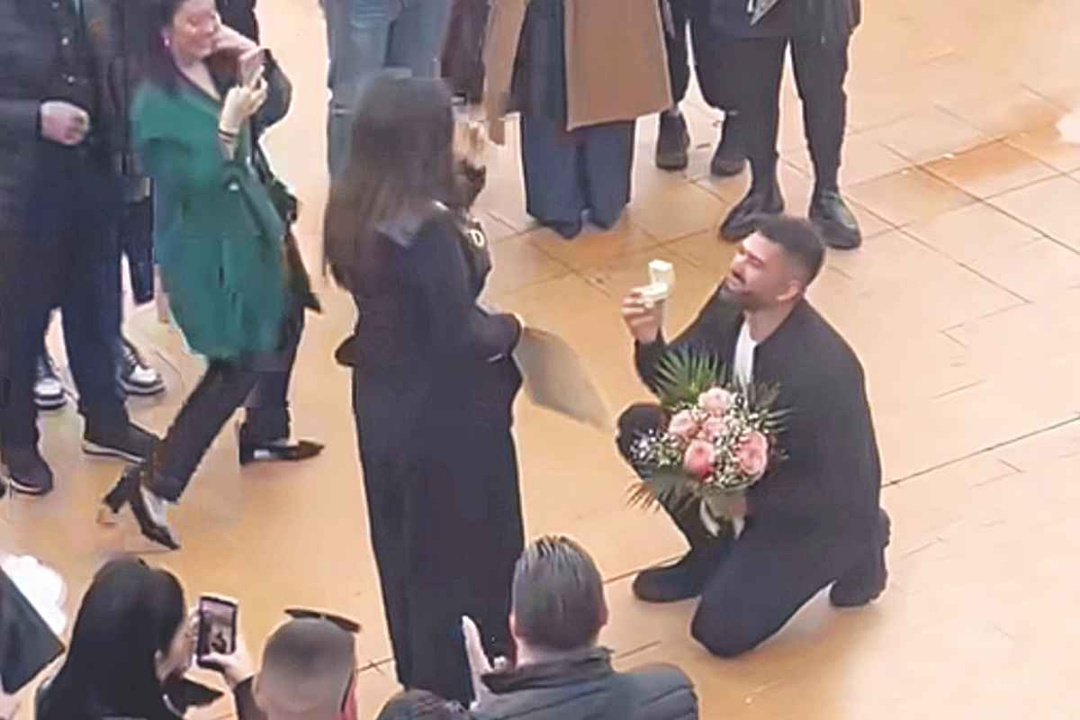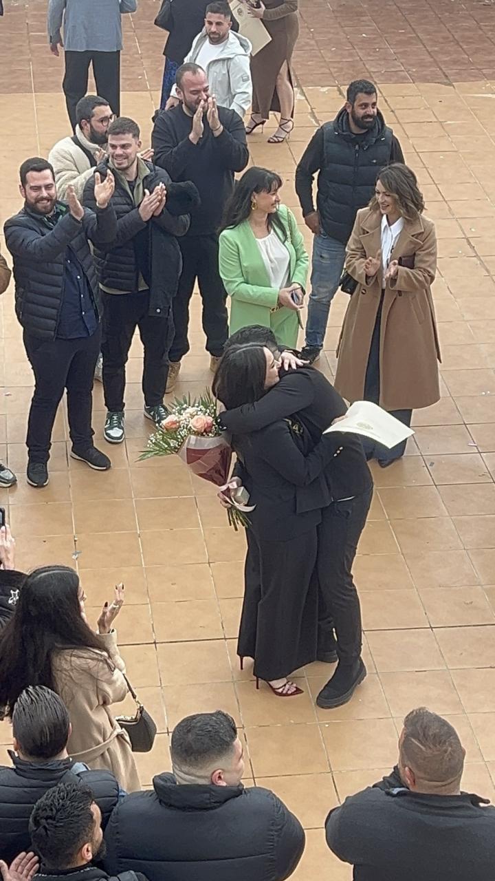 Βλέποντας αυτήν τη σκηνή, οι συγγενείς και οι φίλοι της νεαρής πτυχιούχου ξέσπασαν σε χειροκροτήματα, με την ίδια να λέει, φανερά ξαφνιασμένη και χαρούμενη, το πολυπόθητο «ναι».