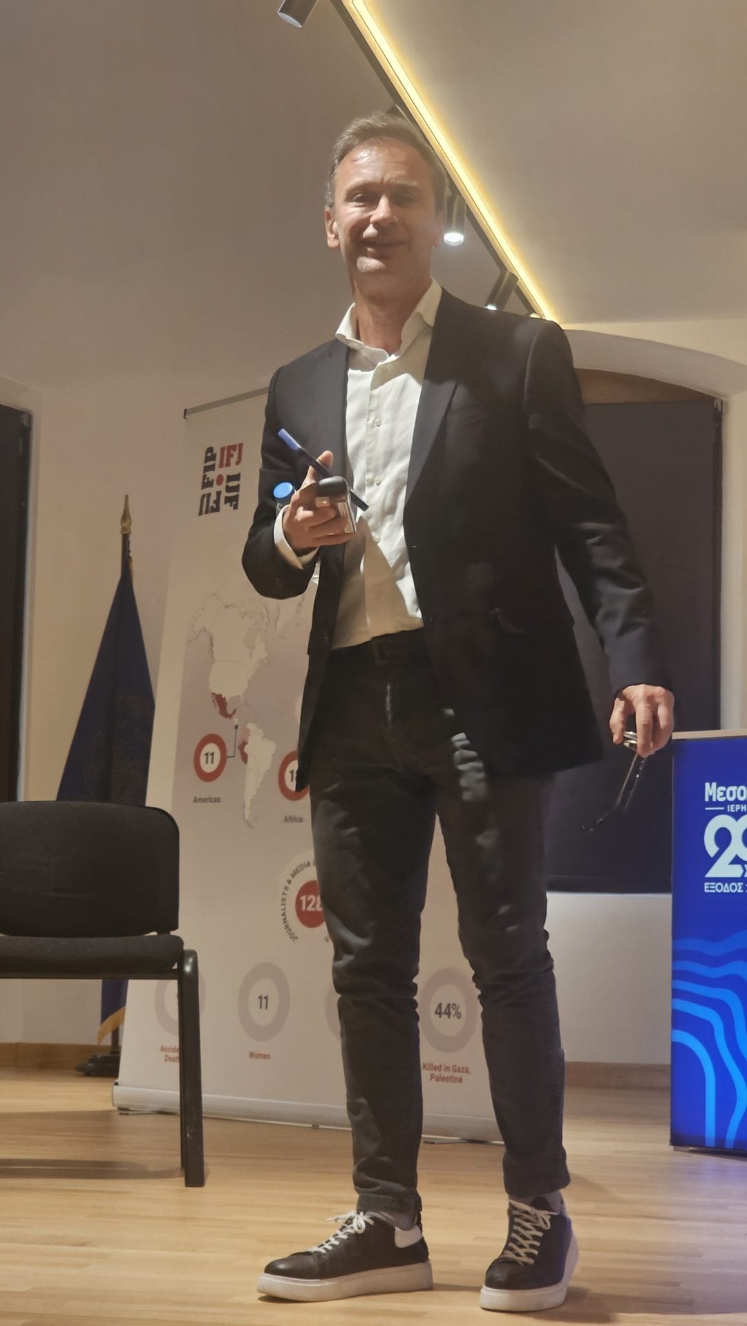 Η βράβευση έγινε παρουσία της προέδρου της Διεθνούς Ένωσης Δημοσιογράφων (αποτελείται από 146 χώρες και 600.000 δημοσιογράφους), της Γαλλίδας Ντομινίκ Πρενταλιέ, η οποία αποκάλυψε ότι πάνω από 1.000 δημοσιογράφοι έχουν σκοτωθεί από το 2012 έως το 2022 στα πεδία των μαχών δίνοντας τη ζωή τους με αυταπάρνηση, ενώ 250 δημοσιογράφοι έχουν χάσει τη ζωή τους το 2025.