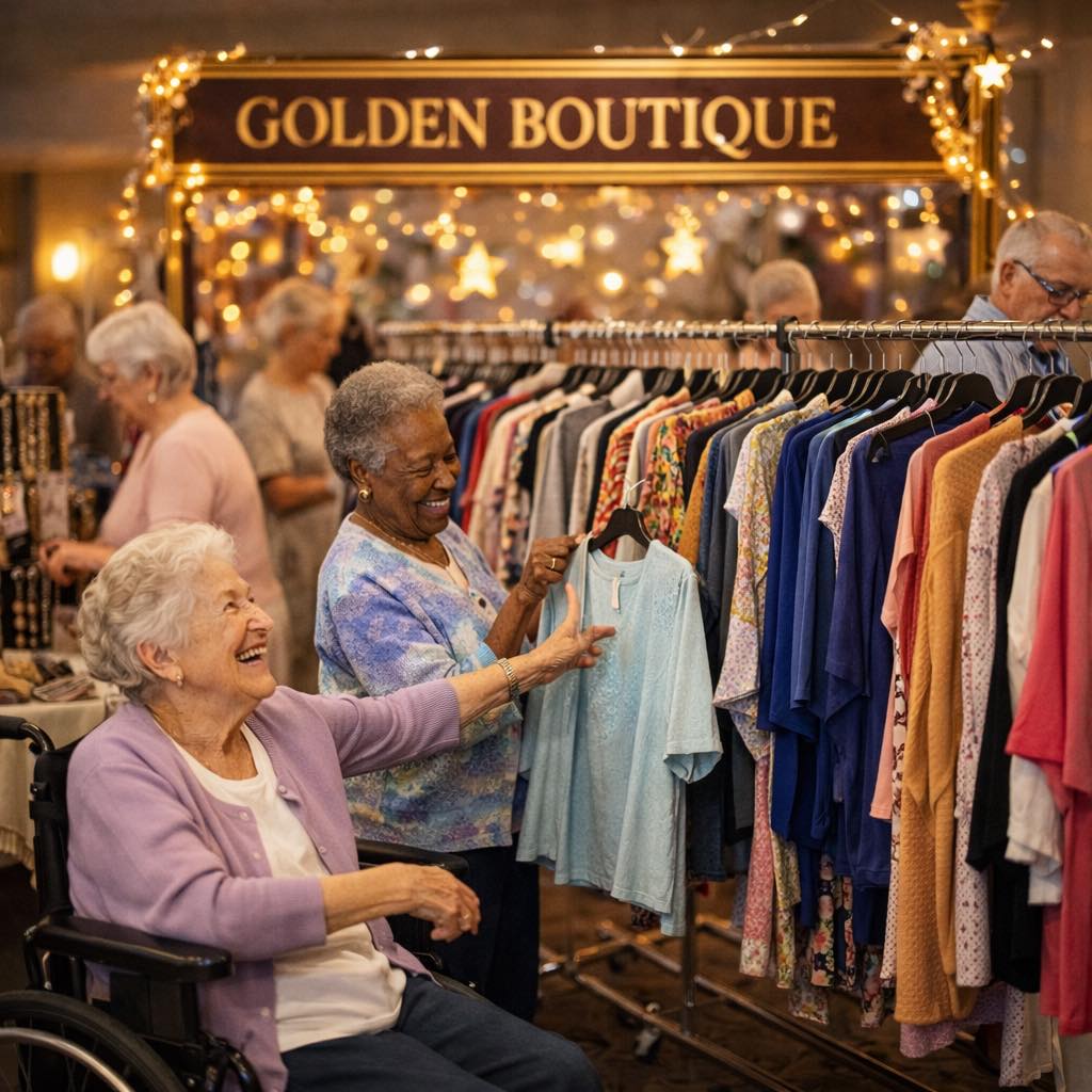 Κινητή μπουτίκ «ξεπηδάει» σε γηροκομεία των ΗΠΑ για να προσφέρει ξανά στους ηλικιωμένους την απόλαυση να κάνουν ψώνια και να ανέβει η ψυχολογία τους, δίνοντάς τους μια αίσθηση κανονικότητας και αυτονομίας.