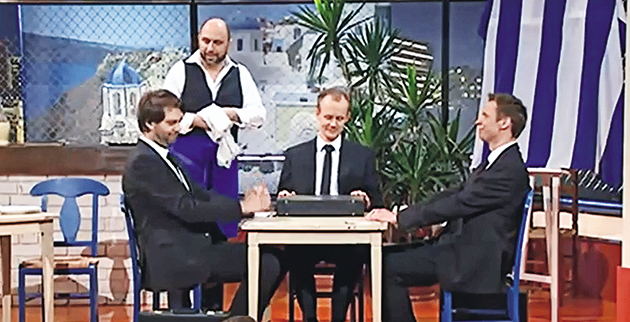Η χώρα μας στην εν λόγω σατιρική εκπομπή παρουσιάζεται σαν…ταβέρνα της οποίας τα οικονομικά έχει αναλάβει να βάλει σε τάξη η τρόικα.