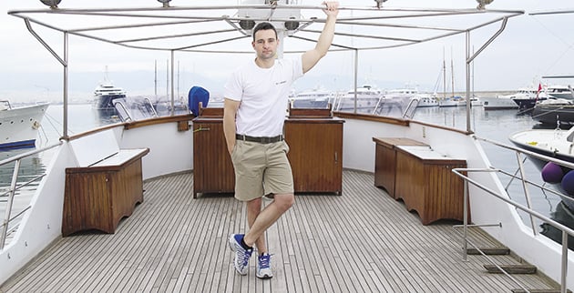 Λίγο καιρό μετά την επιστροφή του μπήκε στο τετραμελές πλήρωμα της θαλαμηγού ενός Κύπριου επιχειρηματία, ο οποίος κάνει κρουαζιέρες κάθε καλοκαίρι με την παρέα του. «Είμαι δώδεκα χρόνια εδώ. Ο πατέρας μου είναι καπετάνιος στο κότερο. Εγώ απασχολούμαι ως καμαρότος, ναύτης, μηχανικός, λίγο απ’ όλα» συνεχίζει.