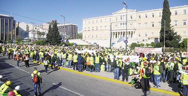 Χιλιάδες μεταλλωρύχοι έφτασαν στην Αθήνα με πούλμαν από τις Σκουριές Χαλκιδικής και «πολιόρκησαν» επί ώρες το Σύνταγμα