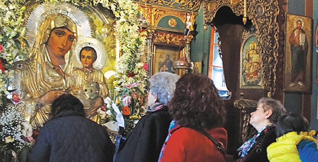 Στο μικρό προαύλιο του ναού εκατοντάδες πιστοί καθημερινά περιμένουν υπομονετικά να μπουν στην εκκλησία και να ασπασθούν την εικόνα, η οποία έχει τοποθετηθεί στο κέντρο του ναού.