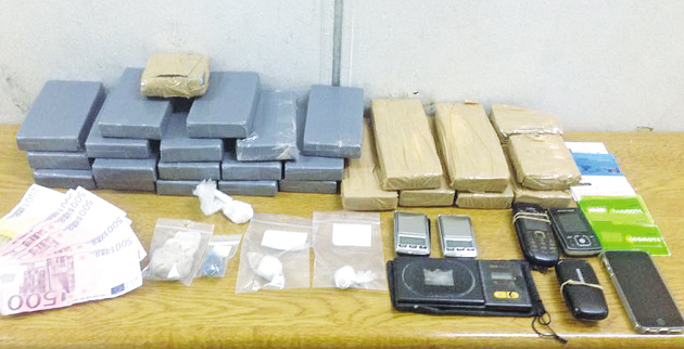 Σύμφωνα με τις επίσημες ανακοινώσεις, στην κατοχή του συζύγου της γνωστής τηλεοπτικής ηθοποιού και των άλλων δύο συλληφθέντων -στα σπίτια, στα οχήματα που χρησιμοποιούσαν και σε άλλους αποθηκευτικούς χώρους- βρέθηκαν και κατασχέθηκαν συνολικά 4,5 κιλά ηρωίνης, δύο κιλά και 739 γραμμάρια κατεργασμένου χασίς τύπου «σοκολάτα» και το χρηματικό ποσό των 2.700 ευρώ, το οποίο προέρχεται αποκλειστικά από την εμπορία των ναρκωτικών.