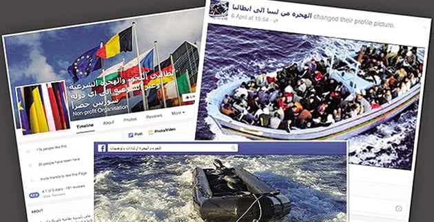 «Αλλοι τους δείχνουν πώς να βάζουν μπρος τη μηχανή, με αποτέλεσμα να χάνουν τον προσανατολισμό τους ή να ξεμένουν από καύσιμα» λέει, διευκρινίζοντας ωστόσο ότι δεν δέχεται γυναικόπαιδα, σε αντίθεση με άλλους. Μία ακόμη σελίδα στο facebook, με την ονομασία «Migration from Libya to Italy» (μετανάστευση από τη Λιβύη στην Ιταλία), υπόσχεται επίσης άνετη και αξιόπιστη εξυπηρέτηση για όλους και έχει ήδη 4.200 likes.