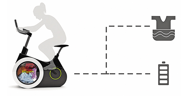 Οταν λοιπόν ο χρήστης γυμνάζεται, τα ρούχα μέσα στον κάδο πλένονται όπως ακριβώς συμβαίνει και στο κανονικό πλυντήριο. Το ακόμη καλύτερο είναι ότι γεννήτρια που υπάρχει ενσωματωμένη στο ποδήλατο αποθηκεύει το περίσσευμα της παραγόμενης από την κίνηση των πεταλιών ενέργειας, ώστε αυτή να χρησιμοποιηθεί από το πλυντήριο χωρίς ο χρήστης να ποδηλατεί συνεχώς.