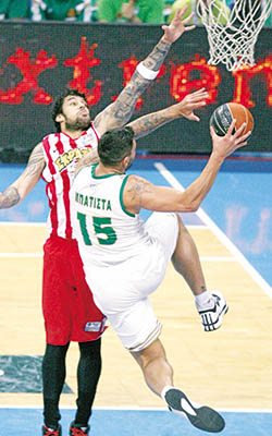 Ο Ολυμπιακός επικράτησε 77-66 του Παναθηναϊκού στο εξ αναβολής ντέρμπι της 24ης αγωνιστικής και κατέκτησε και μαθηματικά την πρώτη θέση, ωστόσο το ματς επισκιάστηκε από την προσωρινή διακοπή μισής ώρας, όταν 1’26” πριν από το φινάλε, 40-50 οπαδοί του «τριφυλλιού» επιχείρησαν να εισβάλουν στο παρκέ. Κινούμενοι επιθετικά προς τον πάγκο των «κόκκινων», έπειτα από κίνηση του Βασίλη Σπανούλη να δείξει τα αυτιά του, μετά το τρίποντο με το οποίο διαμόρφωσε το 77-64…