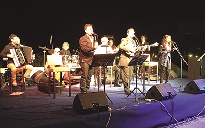 Στο βάθος, ακριβώς δίπλα στην πισίνα είχε στηθεί μια μεγάλη εξέδρα. Σε λίγη ώρα θα ξεκινούσε live πρόγραμμα με βαριά ονόματα, όπως αυτό του μουσικοσυνθέτη Χρήστου Νικολόπουλου που χάρισε με το μπουζούκι του γνωστές μελωδίες τις οποίες ερμήνευσε ο Δημήτρης Μπάσης. Οσο για το μενού, σε αυτό οι διοργανωτές της ΚΕΔΕ έκαναν μια υποτυπώδη προσπάθεια για οικονομία! Δεν υπήρξε πρώτο και δεύτερο πιάτο, αλλά μόνο κρασί και «καναπεδάκια».