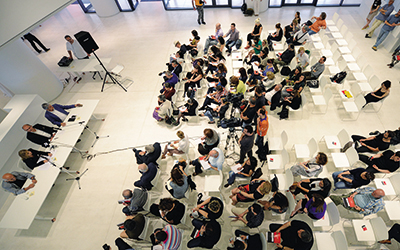 «Χρειάστηκαν να περάσουν 11 χρόνια, πέντε υπουργοί και 12 διαφορετικά διοικητικά συμβούλια για να γίνει αυτό το κτίριο» υπογράμμισε ο αρχιτέκτονας του έργου Βαγγέλης Στυλιανίδης. Λιτό αλλά συνάμα εκθαμβωτικό λόγω μεγέθους -«θηρίο» το
