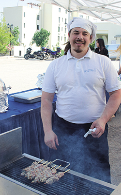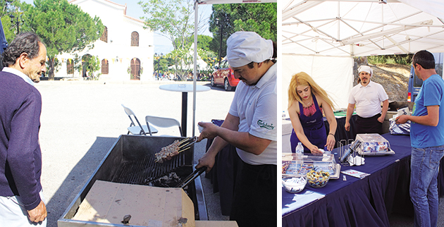 Τα κάρβουνα ανάβουν καθημερινά λίγο μετά τις 16.00 και αμέσως μπαίνουν στη σχάρα τα πρώτα χοιρινά καλαμάκια. Στον πάγκο, δίπλα στην ψησταριά που «καπνίζει» ασταμάτητα έως το βράδυ, απλώνονται μπισκότα, αλμυρά σνακ και τσίγκινοι δίσκοι με μαγειρευτά φαγητά, ενώ το ψυγείο είναι γεμάτο κρύα σάντουιτς, αναψυκτικά και νερά.