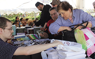 Αντίστοιχη επιτυχία έχει και το κιόσκι της Αποστολικής Διακονίας της Εκκλησίας, που πουλά εκκλησιαστικά είδη, ενώ παράλληλα προσφέρει δωρεάν αγιασμένο νερό. «Ο κόσμος προτιμά τα βιβλία. Το σύγγραμα “Βίος και μαρτύριο της Αγίας Βαρβάρας” είναι εκείνο που “φεύγει” περισσότερο, ενώ οι τιμές ποικίλλουν. Η μεγάλη παιδική έκδοση κοστίζει 3 ευρώ και τα μικρότερα με την παράκληση 1-2 ευρώ» λένε οι υπεύθυνοι του υπαίθριου «βιβλιοπωλείου».