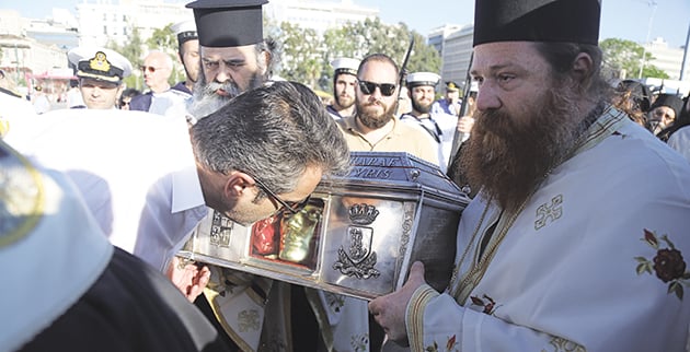 Πλήθος κόσμου ακολούθησε την πομπή με τα λείψανα που τέθηκαν επί δύο και πλέον ώρες σε λαϊκό προσκύνημα