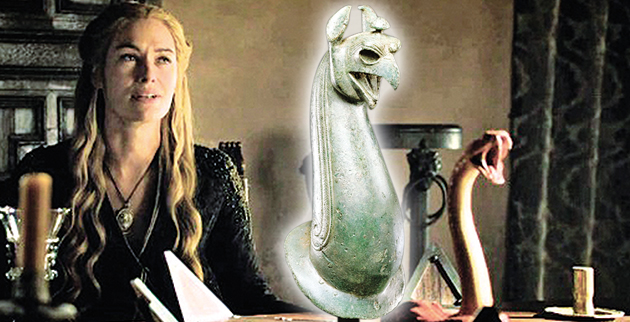 Με μια προτομή φιδιού ελληνικής (!) προέλευσης απέδωσαν οι μεσαιωνολόγοι του Γκετί την απειλή της χήρας του Ομπεριν Μαρτέλ, Ελάρια Σαντ, προς τους Λάνιστερ, ενώ η εμφάνιση του τρομερού Ντρόγκον, του μαύρου δράκου της Ντενέρις στον ουρανό της Βαλύρι,α εικονογραφήθηκε με ένα βάζο που προέρχεται από τη Γρανάδα και εκτίθεται στο Εθνικό Μουσείο της Σουηδίας.