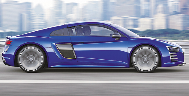 αυτοοδηγούμενων οχημάτων, η Audi φαίνεται πως έχει βαλθεί να δημιουργήσει μοντέλο επιδόσεων. Το concept όχημά της έχει δύο κινητήρες που τροφοδοτούνται με μπαταρία και αποδίδουν ιπποδύναμη 456 ίππων, επιτρέποντάς του να επιταχύνει από τα 0 στα 100 χλμ./ώρα μέσα σε 3,9 δευτερόλεπτα. Οπως ανακοίνωσε η εταιρία, το R8 e-tron θα αποτελέσει ένα είδος «hi-tech κινητού εργαστηρίου» για τη δοκιμή των νέων τεχνολογιών της, καθώς θα χρησιμοποιεί λέιζερ, ραντάρ, βιντεοκάμερες και ειδικούς αισθητήρες προκειμένου να φτιάξει μια λεπτομερή εικόνα του περιβάλλοντός του και να πλοηγηθεί με ασφάλεια στην κίνηση.