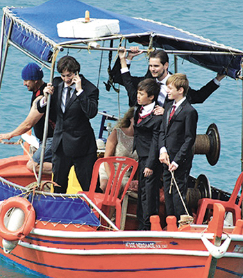 Το ελληνικό παραδοσιακό στοιχείο δεν έλειπε ούτε την ημέρα του γάμου, αφού συγγενείς και καλεσμένοι του ζευγαριού έφτασαν με καΐκι στον χώρο της δεξίωσης. Ευχαριστημένοι έμειναν και οι ντόπιοι, καθώς οι λαμπεροί φίλοι των νεονύμφων άφησαν πολύτιμο συνάλλαγμα και διαφήμισαν την περιοχή τους στο εξωτερικό.