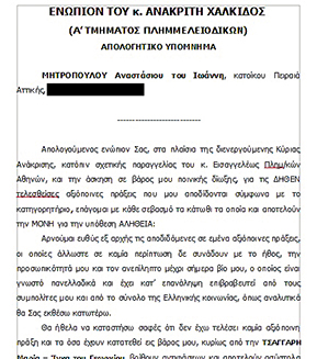 ότι δεν είχε καταφέρει να εντοπίσει τηλεφωνικά την κόρη της αείμνηστης ηθοποιού, γι’ αυτό και απευθύνθηκε σε εκείνους, όπως αναφέρει ο Μητρόπουλος στην κατάθεσή του.