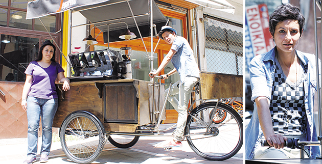 Μια κινητή καφετέρια πάνω σε τρεις ρόδες αναμένεται να γίνει τουριστική ατραξιόν στην παραλία της Θεσσαλονίκης, σερβίροντας καφέ, φυσική λεμονάδα, χυμούς και δροσερά κοκτέιλ! Το πρώτο ελληνικό ποδήλατο-καφέ αποτελεί ιδέα δύο άνεργων πτυχιούχων που σκέφτηκαν να συνδυάσουν την επαγγελματική διέξοδο με την ποδηλασία και τη διασκέδαση. Το coffee bike της Γεωργίας Παπαδοπούλου και της Σοφίας Τόσκα είναι χειροποίητο, δουλεύει με γεννήτρια και ετοιμάζεται να κάνει σύντομα τις πρώτες βόλτες του στην πόλη.