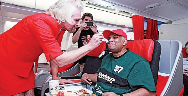 Μπορεί να άργησε δύο χρόνια, όμως όταν έφτασε η στιγμή να πληρώσει το χαμένο του στοίχημα, το έκανε με ιδιαίτερο ζήλο. Ο Ρίτσαρντ Μπράνσον άφησε για λίγο τα κοστούμια και τις γραβάτες, και ντύθηκε αεροσυνοδός της Air Asia ύστερα από στοίχημα σχετικό με τη Formula 1 που είχε χάσει με το αφεντικό της, ο Τόνι Φερνάντεζ, πριν από δύο χρόνια. Το μεγάλο αφεντικό της Virgin, θυμίζοντας περισσότερο drag queen παρά αεροσυνοδό, ξύρισε τα πόδια του, φόρεσε δικτυωτό καλσόν, την κόκκινη στολή της Air Asia, και περιποιήθηκε τους επιβάτες πτήσης από το Περθ της Αυστραλίας μέχρι την Κουάλα Λουμπούρ.