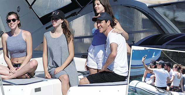 Ο γοητευτικός 51χρονος coach των «λύκων» (όπως αποκαλείται χαϊδευτικά η Ρόμα), ύστερα από μια γεμάτη αθλητική σεζόν, θέλησε να χαλαρώσει, γι’ αυτό κι επέλεξε τα γαλάζια νερά του Αιγαίου, τα οποία… αλωνίζει με σκάφος. Ο φωτογραφικός φακός τον «συνέλαβε» μάλιστα την ώρα που εκείνος και τα τρία κορίτσια, η 23χρονη Κάρλα, η 18χρονη Εύα και η 16χρονη Λένα, βρίσκονταν μέσα στο φουσκωτό που τους μετέφερε και πάλι στο σκάφος τους. Ως… μοντέρνος μπαμπάς, ο Ρούντι έβγαλε και selfie με τις κόρες του, καθώς είναι πλήρως εξοικειωμένος με την τεχνολογία και με τα social media. Αλλωστε μέσω twitter έκανε γνωστή -αναρτώντας μια φωτογραφία- και τη σχέση του με την παρουσιάστρια του επίσημου καναλιού της Ρόμα, Φραντσέσκα Μπριέντσα.