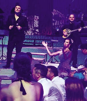 Με φόντο λευκές αρχαίες καμάρες όμοιες με τις πύλες του Αδριανού και εικόνες βγαλμένες από σκηνικό Ανατολής, οι 500 καλεσμένοι έζησαν μια μοναδική εμπειρία. Το ξέφρενο πάρτι ξεκίνησε όταν μια βάρκα προσέγγισε το λιμανάκι του ξενοδοχείου και τότε πυροτεχνήματα φώτισαν τον ουρανό κάνοντας τη νύχτα μέρα.