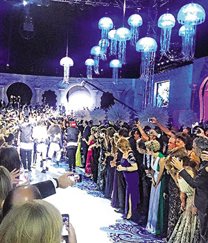 Από τις λίγες φωτογραφίες που διέρρευσαν στο διαδίκτυο φαίνονται καθαρά τα φωτιστικά «μέδουσες» σε μπλε και άσπρο, που φώτιζαν μία από τις δεξιώσεις, εκεί όπου οι κυρίες ξετίναξαν τους πιο διάσημους οίκους μόδας παγκοσμίως και άνοιξαν τις θυρίδες προκειμένου να φορέσουν τα πολύτιμα κοσμήματά τους. Οι βαθύπλουτοι Σύριοι γονείς της Ταμάρα, που έχουν στην ιδιοκτησία τους τη