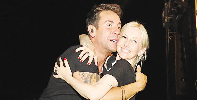Σαν τη γάτα ξεγλίστρησε ανάμεσα στους άλλους fans και τους σεκιούριτι, ανέβηκε στο stage, αγκάλιασε τον «Μαζώ» και του πήρε το μικρόφωνο ρωτώντας το κοινό «δεν είναι καταπληκτικός;». Μιλάμε για γκρούπι που το λέει η περδικούλα της!