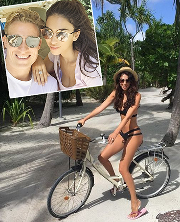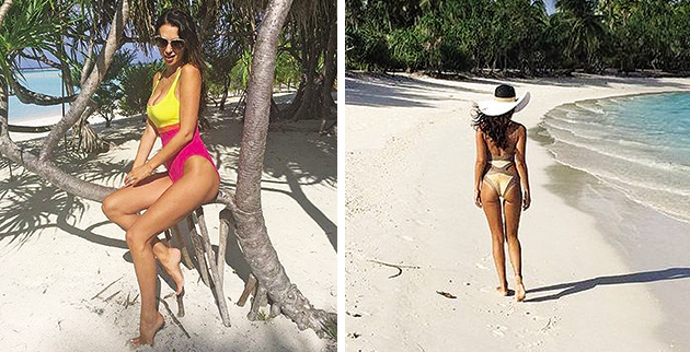 Πότε ποζάρει με μαύρο μπικίνι ανεβασμένη στο ποδήλατό της και πότε κάνει το σήμα της νίκης μπροστά από τα γραμμένα πάνω στην άμμο ονόματα εκείνης και του συζύγου της. Η συλλογή των μαγιό της μοιάζει ανεξάντλητη, αφού σε κάθε κλικ εμφανίζεται και με διαφορετικό κομμάτι.