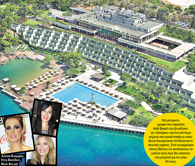 Ολοι οι celebrities ζουν τον μύθο του Αστέρα. Η σεζόν στο «Astir Palace Resort» άρχισε με τα γνωστά deals αγοραπωλησίας του, νεανικές παρτίδες τάβλι by the pool, κοσμικά καρέ μπιρίμπας στις καμπάνες από τους μόνιμους ενοίκους, όπως οι οικογένειες Ζωγράφου και Συγγελίδη, παλιά και νέα ειδύλλια. Στην πλαζ του Αστέρα επιδίδονται στις βουτιές και στην ηλιοθεραπεία από τον Γιώργο Λιάγκα και τη Φαίη Σκορδά ως τον βιομήχανο Νέλλο Κανελλόπουλο και την πάντα ηλιοκαμένη σύζυγό του Λη Κανελλοπούλου, όταν δεν λιάζονται στην αγαπημένη τους Μύκονο, αλλά και μοντέλα και αθλητές με κοιλιακούς-φέτες.