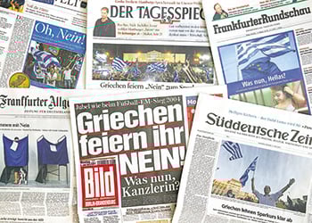 «Το “όχι” τη Αθήνας είναι ακόμα μία ήττα για τη Μέρκελ» σχολιάζει αρθρογράφος της «Welt». Η Γερμανίδα καγκελάριος, σημειώνει η εφημερίδα, βρίσκεται τώρα μπροστά σε ένα δίλημμα, ίσως το πιο δύσκολο που έχει αντιμετωπίσει έως τώρα: υποχωρήσεις ή Grexit;