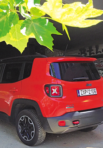 Δεν το περίμενα. Πλησιάζοντας το νέο Renegade ήμουν σκεπτικός και ανήσυχος. Την εξωτερική σχεδίαση δεν τη λες και mainstream, αλλά το ζητούμενο αυτό ήταν: να είναι διαφορετική. Ανοίγοντας την πόρτα τα πρώτα άγχη διαλύονται! Το εσωτερικό είναι άνετο, ποιοτικό, εξαιρετικά στιβαρό αλλά και πολυτελές. Ρυθμίζουμε εύκολα το κάθισμα και ο μεγάλος δίλιτρος diesel κινητήρας του μοντέλου Trailhawk της δοκιμής μας ξυπνάει.