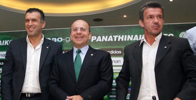 Νέα σελίδα με νέο επιτελείο άνοιξε χθες ο Παναθηναϊκός με επωδό όλων τη λέξη «αναγέννηση». Ο Γιάννης Αλαφούζος παρουσίασε τους Γιάννη Αναστασίου (προπονητής) και Δημήτρη Σαραβάκο (συντονιστής ποδοσφαιρικού τμήματος), οι οποίοι μαζί με τους Γιάννη Βονόρτα, Στιβ Ρούτερ (βοηθοί προπονητή), Γιόσεφ Βος (γυμναστής), Παναγιώτη Αγριόγηνο (προπονητής τερματοφυλάκων) και Νίκο Νταμπίζα (τεχνικός διευθυντής) συγκροτούν το team της νέας περιόδου. Λίγα λόγια και πολλά έργα ζήτησε ο Γιάννης Αναστασίου που δεν έκρυψε ωστόσο το όραμά του για τον Παναθηναϊκό: «Στόχος είναι το κλαμπ να έχει τη δική του φιλοσοφία, όχι βασισμένη σε αγγλικό ή γερμανικό πρότυπο. Αφού υπάρχει η ακαδημία όπου γίνεται δουλειά με καλή φιλοσοφία, στόχος είναι να γίνει αυτό στην πρώτη ομάδα, ώστε σε λίγα χρόνια ο Παναθηναϊκός να παράγει τους δικούς του παίκτες και προπονητές. Θέλουμε να δημιουργήσουμε μια ομάδα που να παίζει καλό ποδόσφαιρο, να το ευχαριστιούνται οι παίκτες και ο κόσμος». Ο Γιάννης Αναστασίου, που παραδέχθηκε off κάμερα ότι έχει «κλείσει» δύο παίκτες (αριστερό εξτρέμ και κεντρικό χαφ από το εξωτερικό) και περιμένει απάντηση από τον Φυτανίδη, δήλωσε ακόμη: «Το μπάτζετ είναι χαμηλό, αλλά θέλουμε να έρθουν παίκτες που να έχουν φιλοδοξία να πετύχουν κάτι με τον Παναθηναϊκό και όχι απλώς να επαναπαυτούν σε ένα συμβόλαιο».
