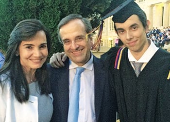 Την περασμένη Πέμπτη ο τέως πρωθυπουργός και τέως πρόεδρος της Νέας Δημοκρατίας είχε την ευκαιρία να καμαρώσει τον 18χρονο γιο του Κώστα, που έλαβε απολυτήριο από το Κολλέγιο Αθηνών – Κολλέγιο Ψυχικού. Ο ίδιος και η σύζυγός του χειροκρότησαν μέσα σε ατμόσφαιρα συγκίνησης και χαράς την απονομή των απολυτηρίων στους μαθητές της τάξης του ’15, καθισμένοι στα προπύλαια του ιστορικού Μπενάκειου Διδακτηρίου, στο Ψυχικό. Ο πανευτυχής Αντώνης Σαμαράς (απόφοιτος και ο ίδιος του Κολλεγίου Αθηνών στην τάξη του ’70) είχε την ευκαιρία να μοιραστεί τη χαρά του και με τον αδερφό του Αλέξανδρο Σαμαρά, πρόεδρο του διοικητικού συμβουλίου του κολλεγίου.